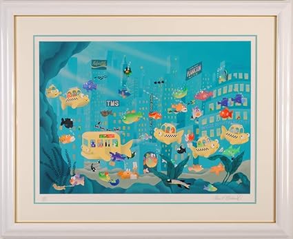 Amazon 魚 絵画 可愛い絵 ジークレー 版画 スチュワート マスコウィッツ Taxi Fish 額付き 版画 彫刻 通販