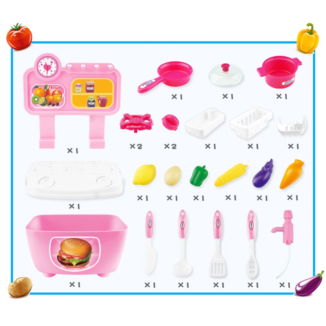 大特価 Pretend Fcosonキッチン料理playset Role B075qd1192 ピンク pieces Pnobya633 ピンク pieces Toddlersガールズボーイズベビー Playおもちゃピースリアルな子供用調理器具食器セットサウンドライト効果for セット Quickqatar Com