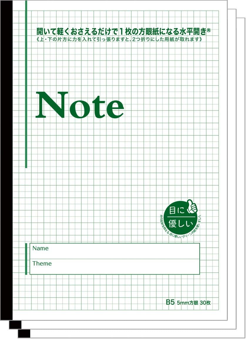 Amazon 目に優しいノート B5判 5mm方眼 紙色 グリーン 30枚 水平開き ナカプリバイン ノート 文房具 オフィス用品
