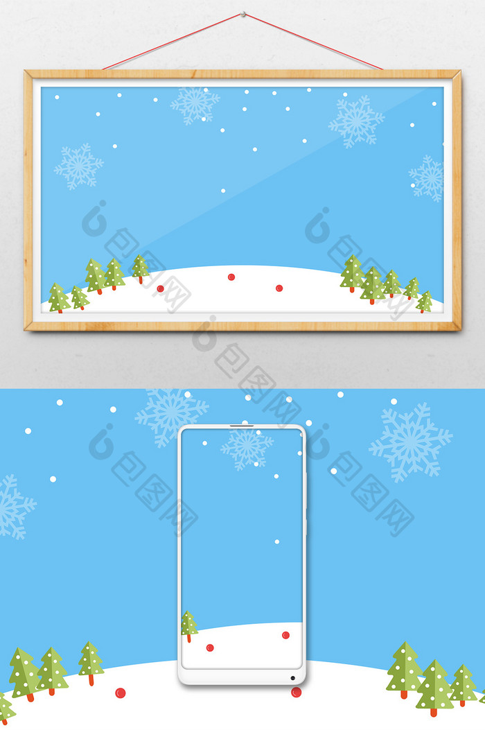 手绘小清新冬季雪地风景主图 背景下载 包图网