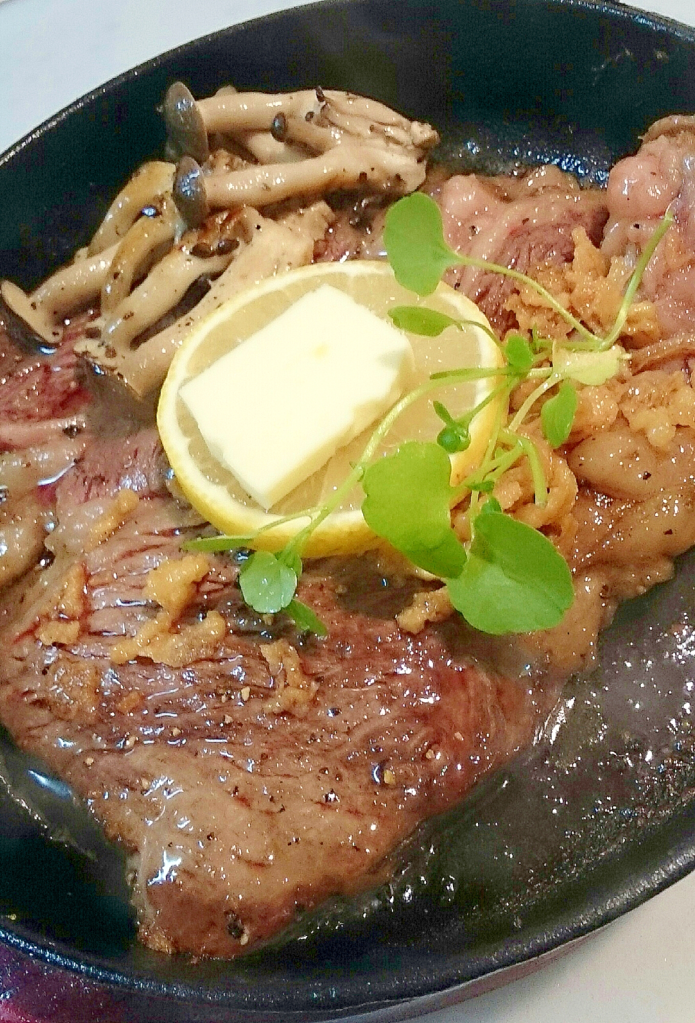 オーナー曰く ウェルダンは美味しく焼こうとすると 易しい焼き方ではないんだよ と すて きな焼き色もお美味しさの証ですね 食べ物 ステーキ すて