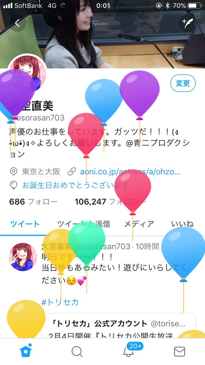 大空直美 風船とんでる お誕生日むかえました 今日からまたひとつ 歳をかさねました これからも素敵なレディを目指して邁進していきますよーー そして 今日2月4日はトリセカのイベントもあります お誕生日当日に