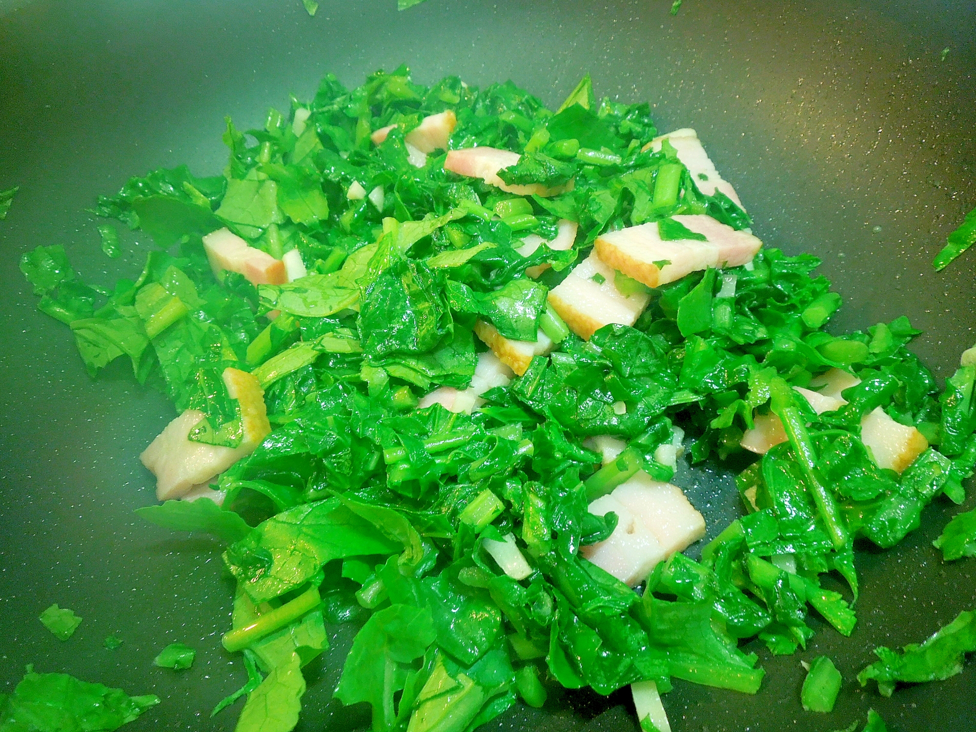 大根葉のニンニクベーコン炒め レシピ 作り方 By ミルク白うさぎ 楽天レシピ