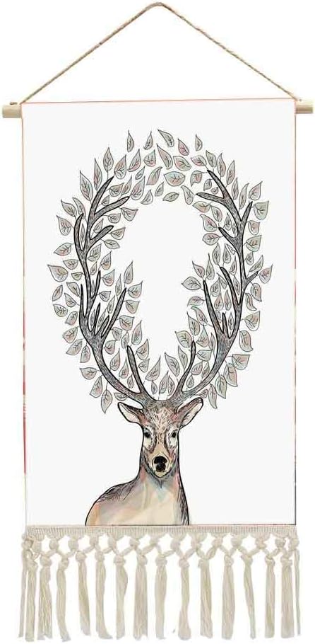 Amazon Co Jp 風景 掛け軸 和柄 桜 さくら 掛け物 掛けじく 鹿 花の角を持つヒップスタートナカイ神話上の生き物パステルカラーイラスト装飾 多機能 個性 壁アート 装飾画 人気 おしゃれ 柔らかいピンクブルー ホーム キッチン