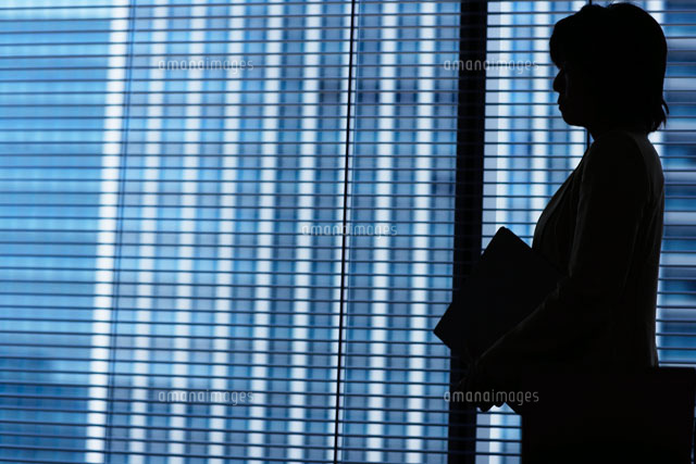 窓際に立つ女性のシルエット の写真素材 イラスト素材 アマナイメージズ
