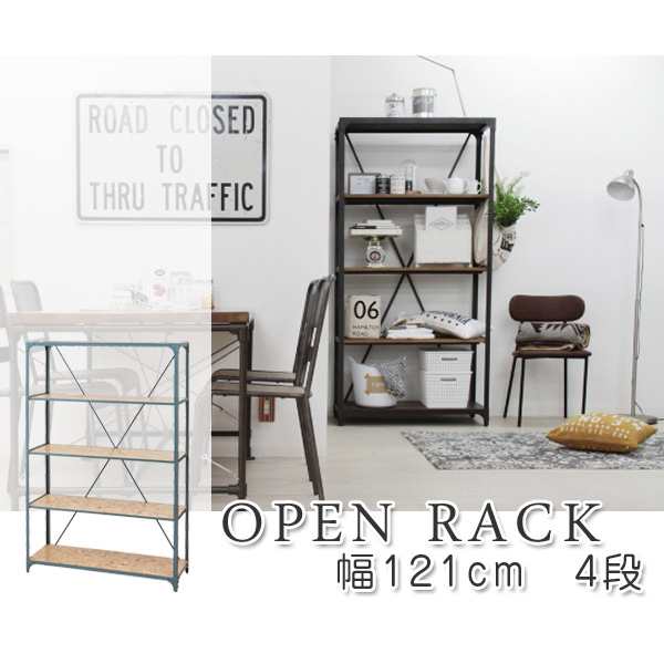 オープンラック 4段 スチールフレーム シンプルデザイン ヴィンテージ 幅121cm 送料無料 ラック 収納棚 ディスプレイラック スチの通販はau Pay マーケット リビングート