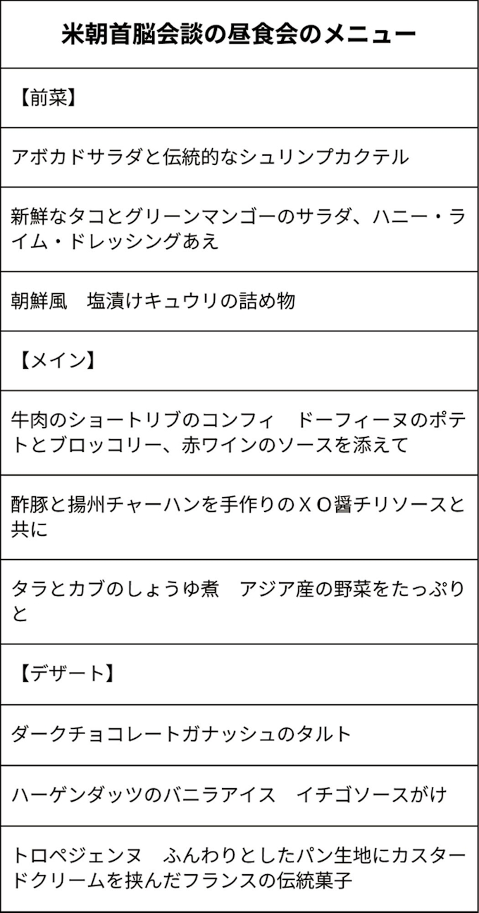 昼食会のメニュー 米朝融和を演出 日本経済新聞